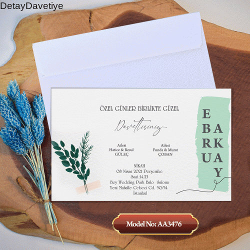 - Pazartesi Akşamına Kadarki Siparişler Çarşamba Kargo Olur Cuma Günü Size Ulaşır - Perşembe Akşamına Kadarki Siparişler Cumartesi Kargo Olur Pazartesi Size UlaşırBilgilerinizle davetiyeniz tasarlanıp size Whatsapp üzerinden tasarım göndereceğiz. Onayınız olmadan kesinlikle baskı olmamaktadır.