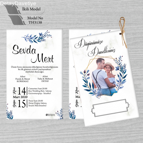 Türkiye’nin Her Bölgesine Ücretsiz Kargo Kapıda Ödeme İmkanı Davetiye modellerimiz 230 gram Amerikan Bristol kağıda basılmaktadır. Davetiyeler kesinlikle ince ve kalitesiz kağıtlardan oluşmamaktadır. Sadece birbirine bağlama işciliği müşteri tarafından ele alınmaktadır. Kartpostal ve tebrik kartlarıyla aynı kağıda basılmaktadır. Davetiye ebatı 16x10 cm'dir. Detay Davetiye olarak sizlere bu modeli yüksek kalite güvencesiyle sunuyoruz. Ücretsiz kargo ve kapıda ödeme fırsatı ile sizlere hizmet sunuyoruz