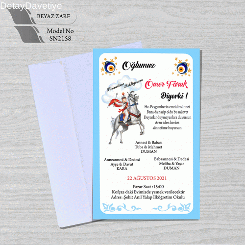 - Pazartesi Akşamına Kadarki Siparişler Çarşamba Kargo Olur Cuma Günü Size Ulaşır - Perşembe Akşamına Kadarki Siparişler Cumartesi Kargo Olur Pazartesi Size UlaşırBilgilerinizle davetiyeniz tasarlanıp size Whatsapp üzerinden tasarım göndereceğiz. Onayınız olmadan kesinlikle baskı olmamaktadır.